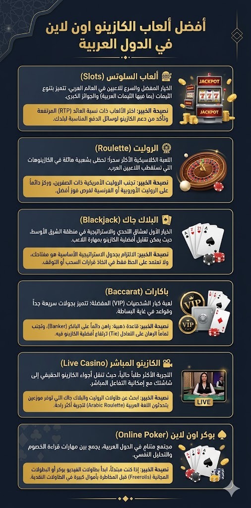 أثناء مراجعتي لمواقع كازينو اون لاين، أبحث عن ألعاب الكازينو المباشر من شركات مثل Evolution وPlaytech، لأنها توفر جودة تصوير عالية وطاولات متنوعة، وبعضها يوفر موزعين يتحدثون العربية في أوقات محددة، وهو ما يعتبر ميزة إضافية لللاعبين في الإمارات.